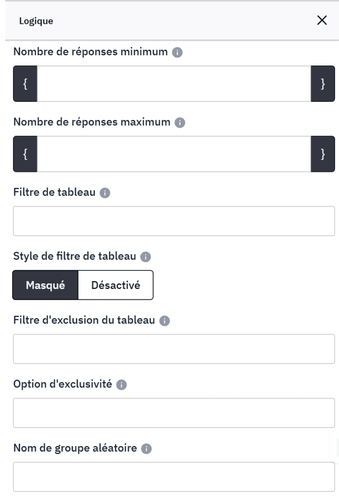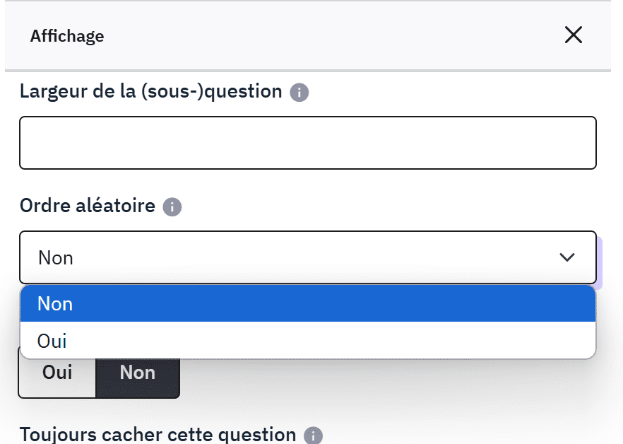 Vous pouvez facilement radomiser les items des questions, les questions ou les groupes de questions.