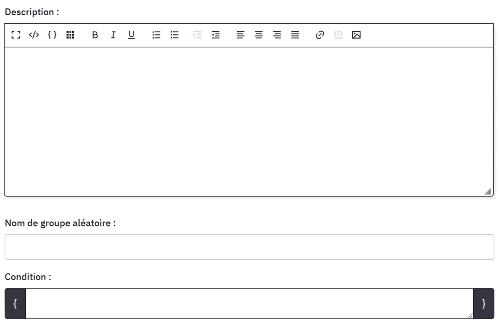Ce nom, si possible simple, « ordrealeatoire » par exemple, doit être ensuite reproduit sur toutes les questions et groupes de questions qui doivent être présentés au hasard.